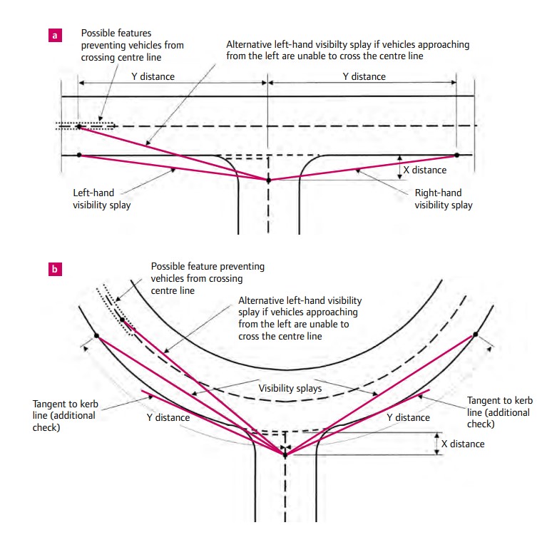 - Measure Distances: Use the appropriate distances for visibility splays based on the speed of the road. These distances can be found in guidelines such as the Design Manual for Roads and Bridges (DMRB) and Manual for Streets (MfS).